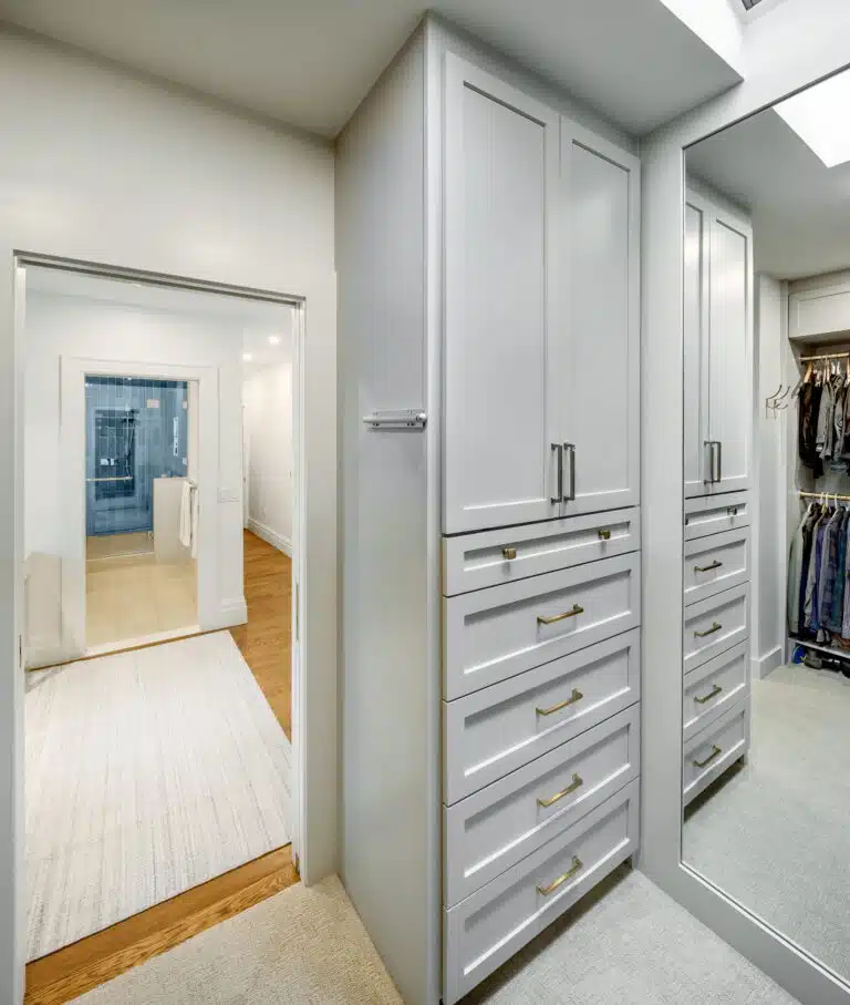 A couple with a growing family inherited a childhood home on the East Side of Providence. The home was everything they dreamed of, it was just missing some modern amenities. Originally, the layout of this room was very outdated. It featured some curved walls and lacked necessary storage. The primary bath was also not connected to the bedroom. What the couple had hoped for was a fully done primary suite featuring a walk-in-closet and luxurious primary bathroom. The end result met every wish and more!