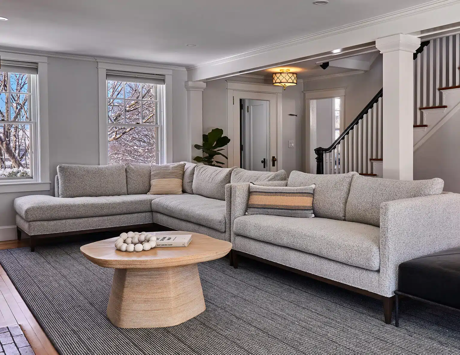 This charming home perched on the hills of Tiverton, RI, was due for a renovation to better meet the needs of a growing family. Having worked with Red House before to renovate their mudroom, the homeowners were eager to give the same treatment to the rest of their first floor.